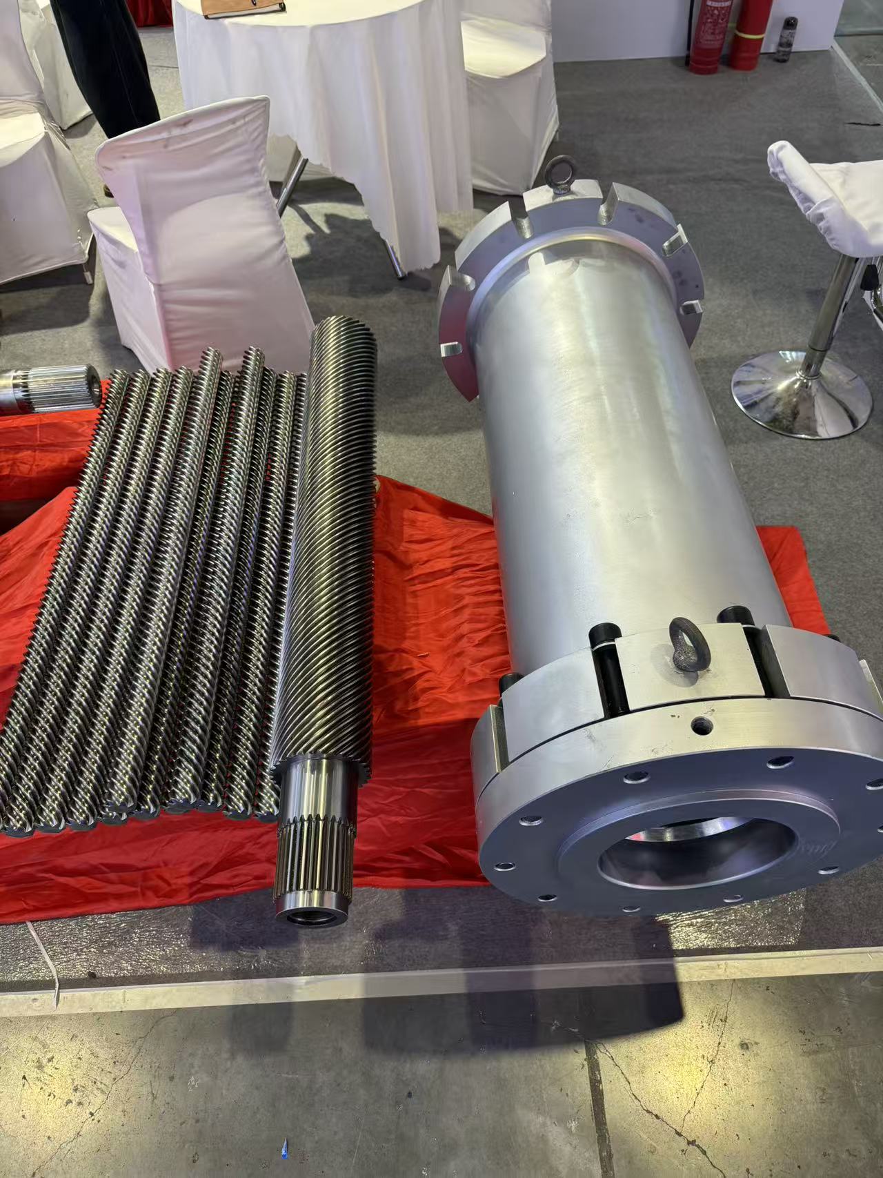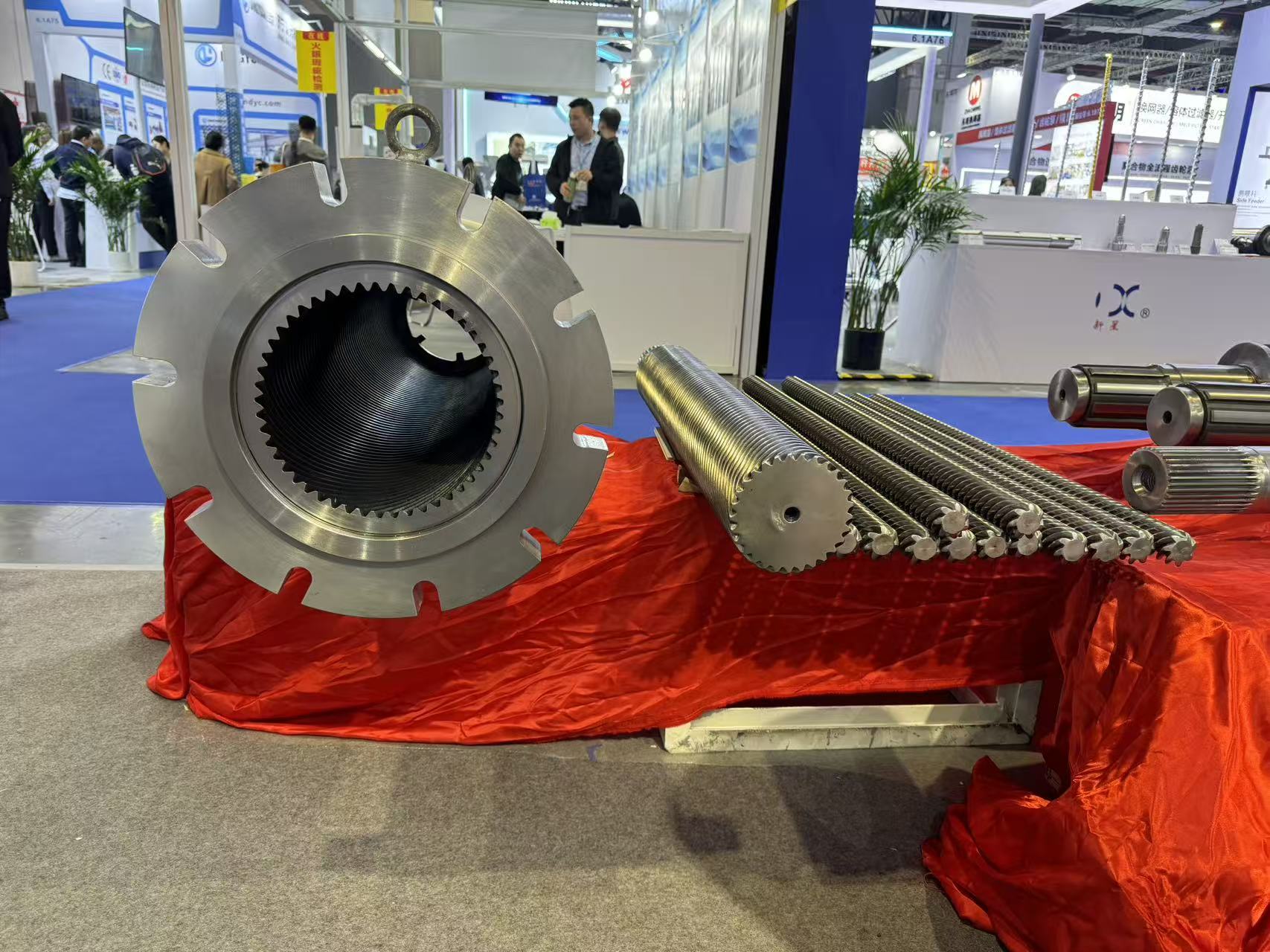 Komponen ekstruder planet milik perusahaan menjadi sorotan utama pameran ini. Desain struktur roda gigi internal dan cincin roda gigi eksternal yang unik memungkinkan pemotongan dan pencampuran bahan polimer dengan intensitas tinggi, menghasilkan pemanasan yang lebih seragam dan meningkatkan plastisisasi secara signifikan.